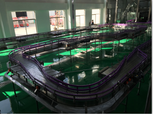 1. 無壓力輸送是由一傾斜的多列且速度不等的三段輸送鏈組成,由三個變頻調(diào)速電機(jī)傳動,設(shè)有滿瓶,積瓶和供瓶數(shù)(單位時間的供瓶數(shù))的光電檢測,根據(jù)酒機(jī)或標(biāo)機(jī)發(fā)出的速度脈沖訊號,通過PLC自動同步跟蹤,改變輸送鏈的速度,以保證連續(xù),無擠壓地供瓶,此段還設(shè)有倒瓶排瓶裝置。