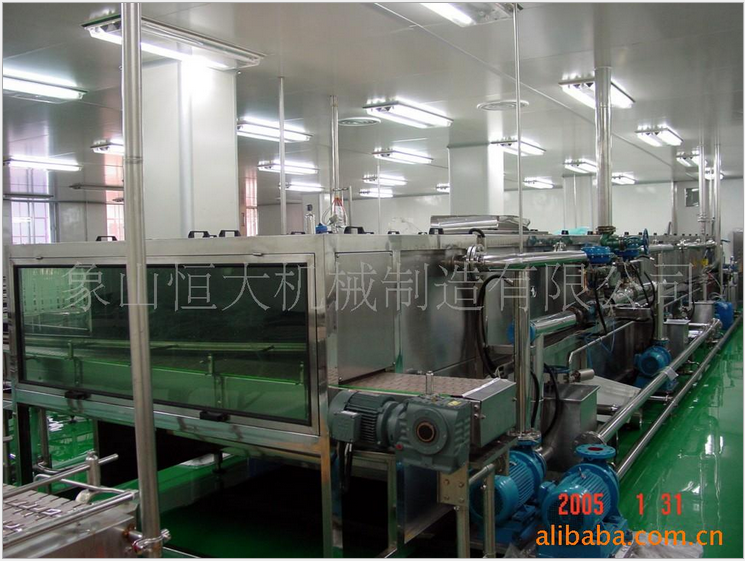 功能描述:由輸送帶傳送過來的包裝瓶在噴淋冷卻機入口處排瓶,順序進(jìn)入噴淋冷卻機,首先到達(dá)第一溫區(qū),在第一溫區(qū)保溫3分鐘(73℃),隨后順序進(jìn)入第二和第三溫區(qū)逐漸降溫,時間為12分鐘,此溫區(qū)循環(huán)水循環(huán),外接冷卻塔,第四溫區(qū)降溫到35—40℃,此溫區(qū)用脫鹽水冷卻,補水時多余水進(jìn)入上一溫區(qū),并設(shè)有吹干裝置。
